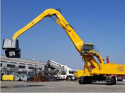 該設(shè)備分別采用了大功率“國三”標(biāo)準(zhǔn)發(fā)動(dòng)機(jī)、380V 西門子電機(jī),以及全套采用施耐德控制系統(tǒng)拖動(dòng)控制兩套力士樂液壓動(dòng)力機(jī)構(gòu)及先導(dǎo)液力控制的世界首臺(tái)“雙動(dòng)力”抓料機(jī)。該機(jī)設(shè)計(jì)了寬體結(jié)構(gòu)梁,以及加強(qiáng)型可更換正、負(fù)差的二節(jié)式作業(yè)主臂,最大吊重量達(dá) 25 噸、最大作業(yè)半徑為 18米。在 5 至 12 米作業(yè)半徑內(nèi),可配備 5.0 立方蚌殼抓斗,或 2.5 立方梅花廢鋼抓斗。