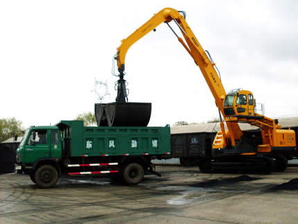 新型二節(jié)臂履帶卸車機(jī)廣泛應(yīng)用在各大火車站貨場