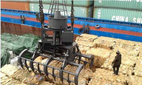 ?The port crane is equipped with a large electro-hydraulic grab, which is used to grab paper and unload the ship